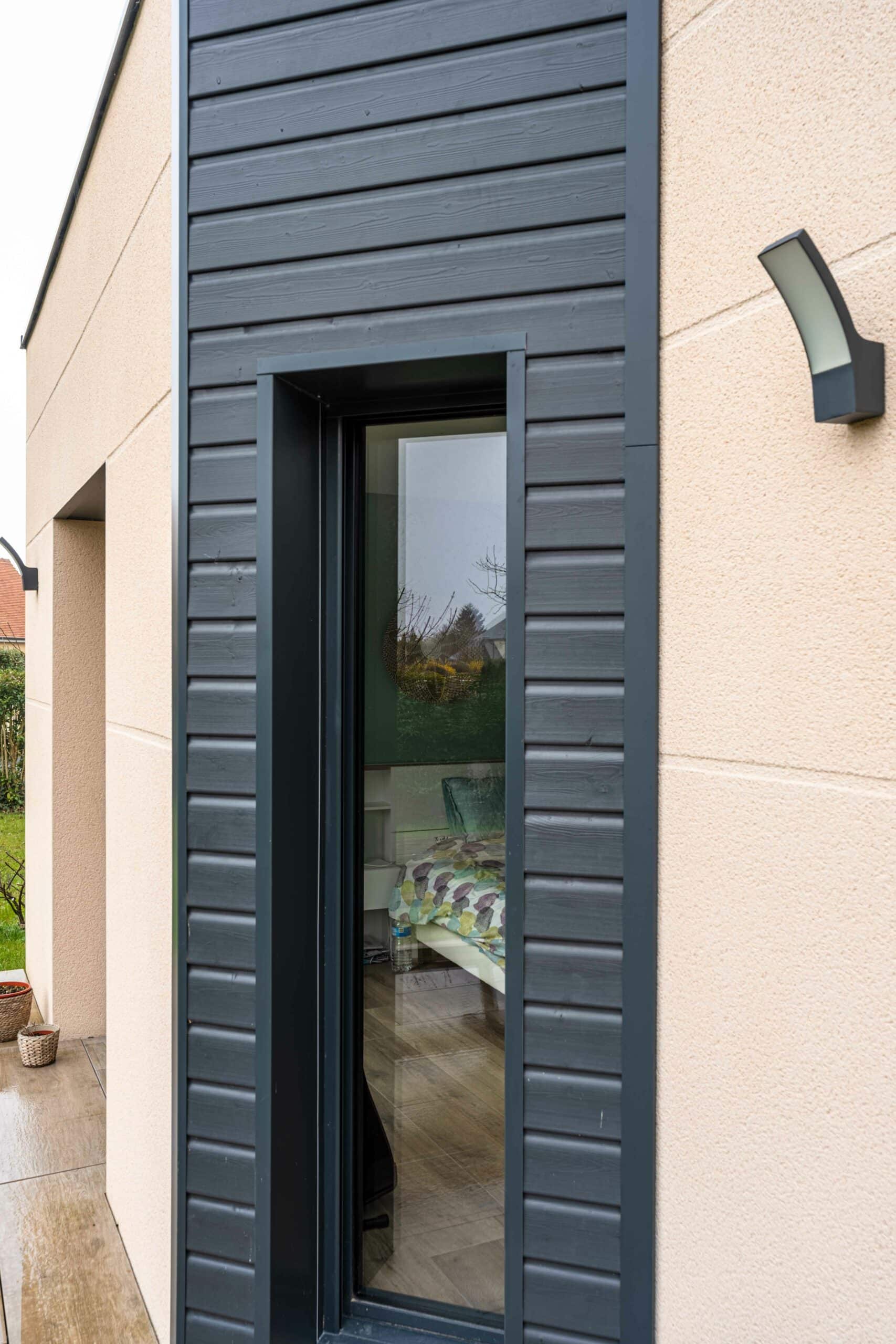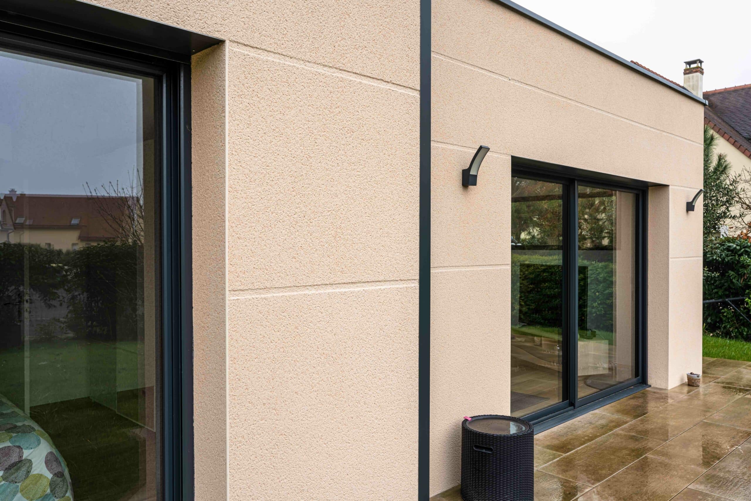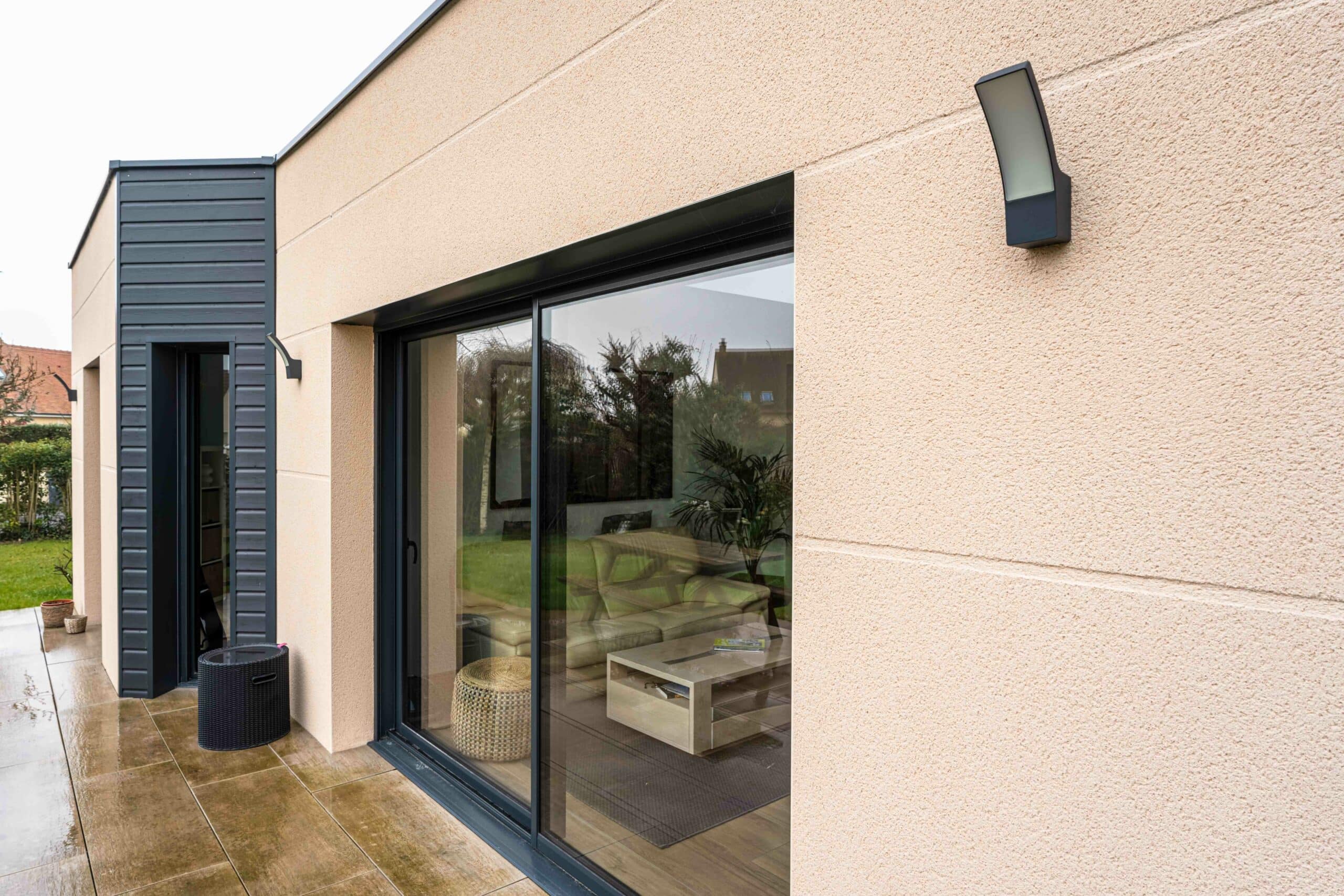 L’extension respecte les proportions de la maison existante tout en affirmant une identité contemporaine. Le contraste entre :
