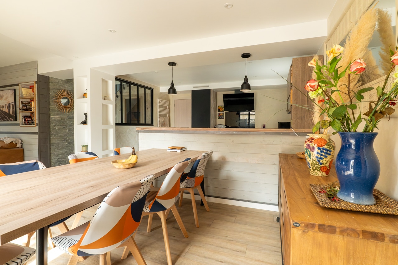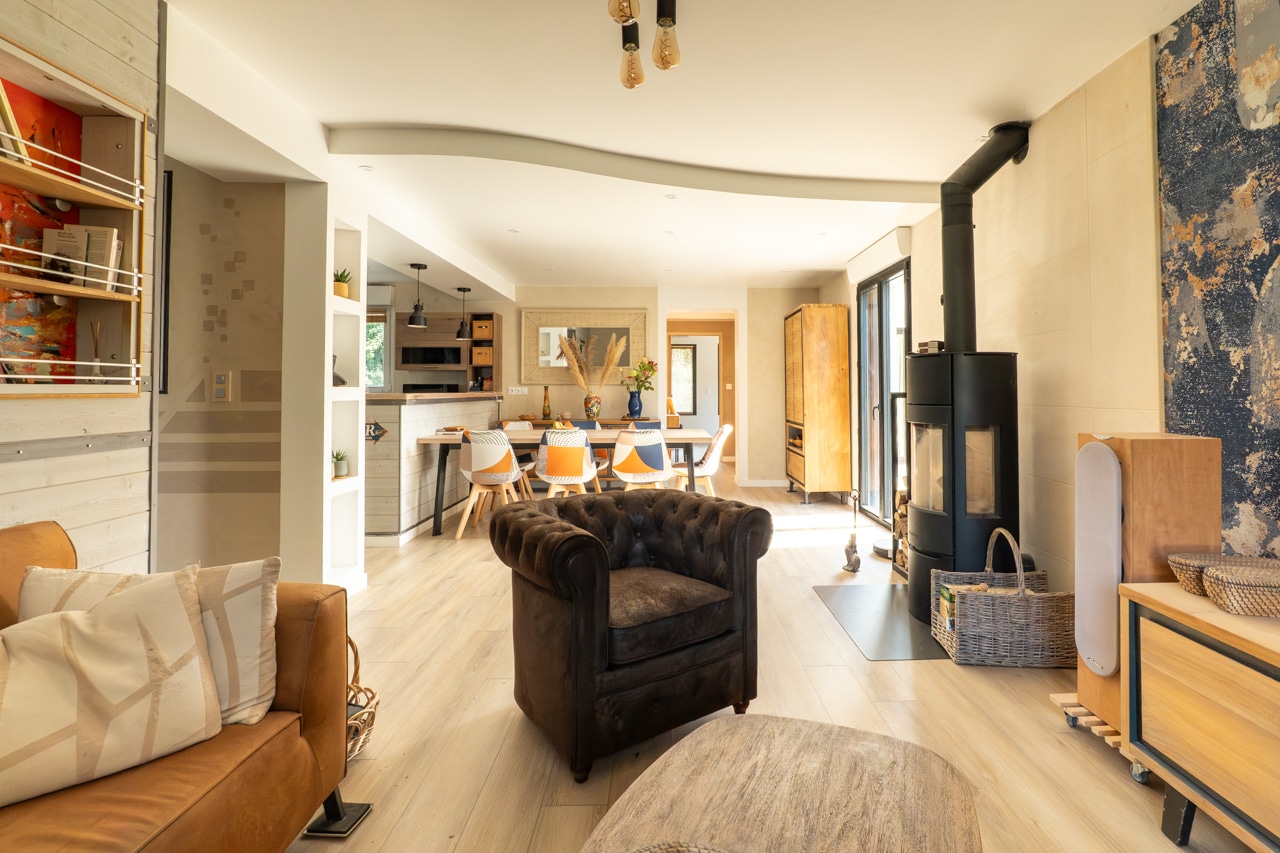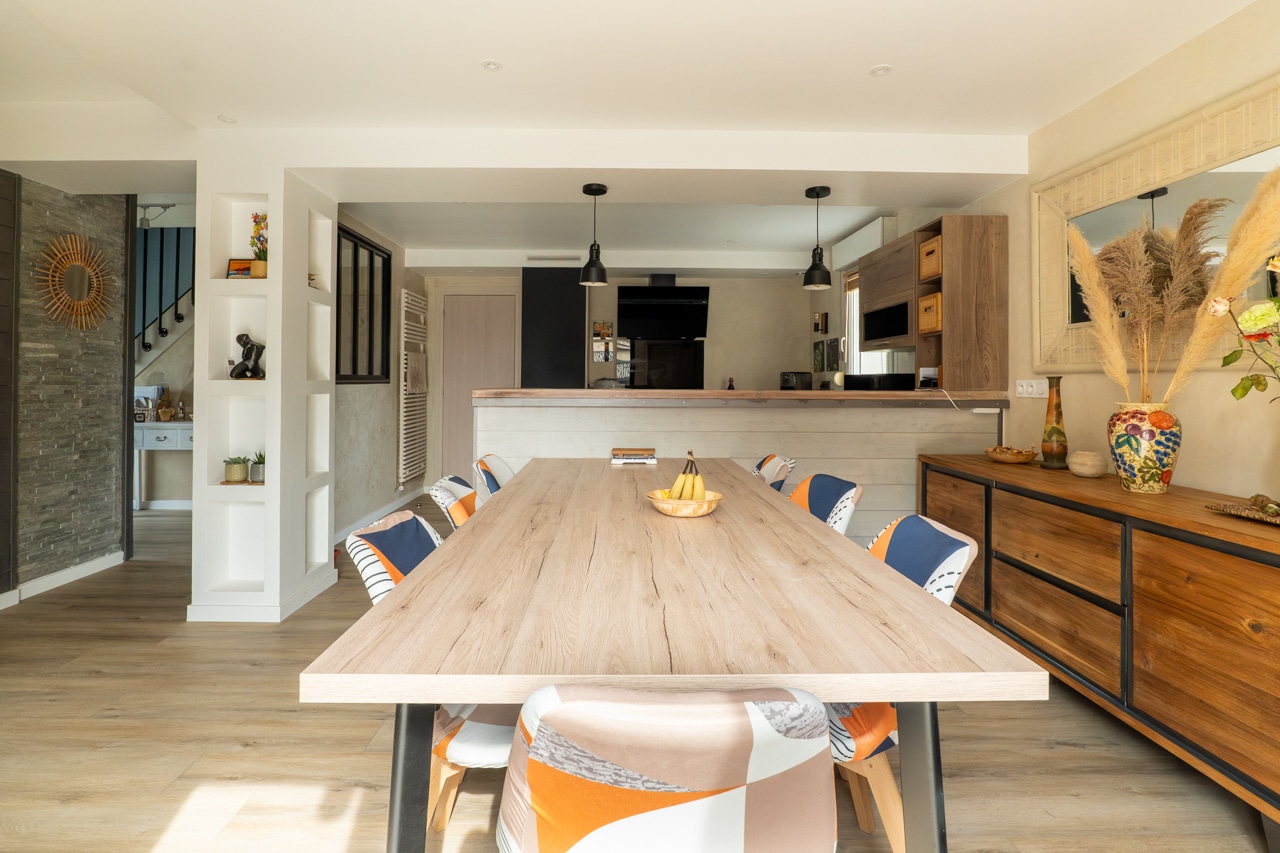Associé à des matériaux chaleureux et à une décoration soignée, l’ensemble offre une atmosphère à la fois contemporaine et conviviale.